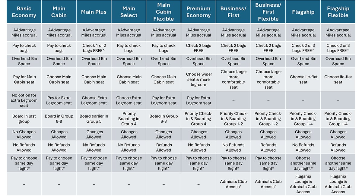 American Airlines Fare Class Information